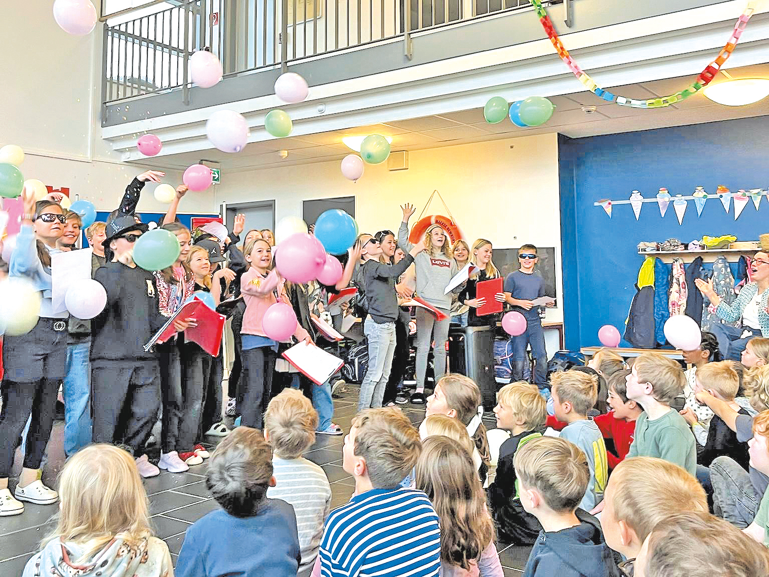 Schon beim Betreten der geschmückten Aula war zu spüren, wie sehr die Kinder, Kolleginnen und Kollegen sowie die Elternvertretung „ihrer Frau Schild“ einen herzlichen Abschied bereiten wollten. Das Programm war ebenso vielfältig wie die Zeit, die Maren Schild an der Schule geprägt hat: Die Schülerinnen und Schüler präsentierten eine humorvolle Neudichtung des Kanons „Hejo, spann den Wagen an“, tanzten fröhlich zu „Die Tasse Kaffee“ und überraschten mit einer neuen Version des Klassikers „99 Luftballons“.