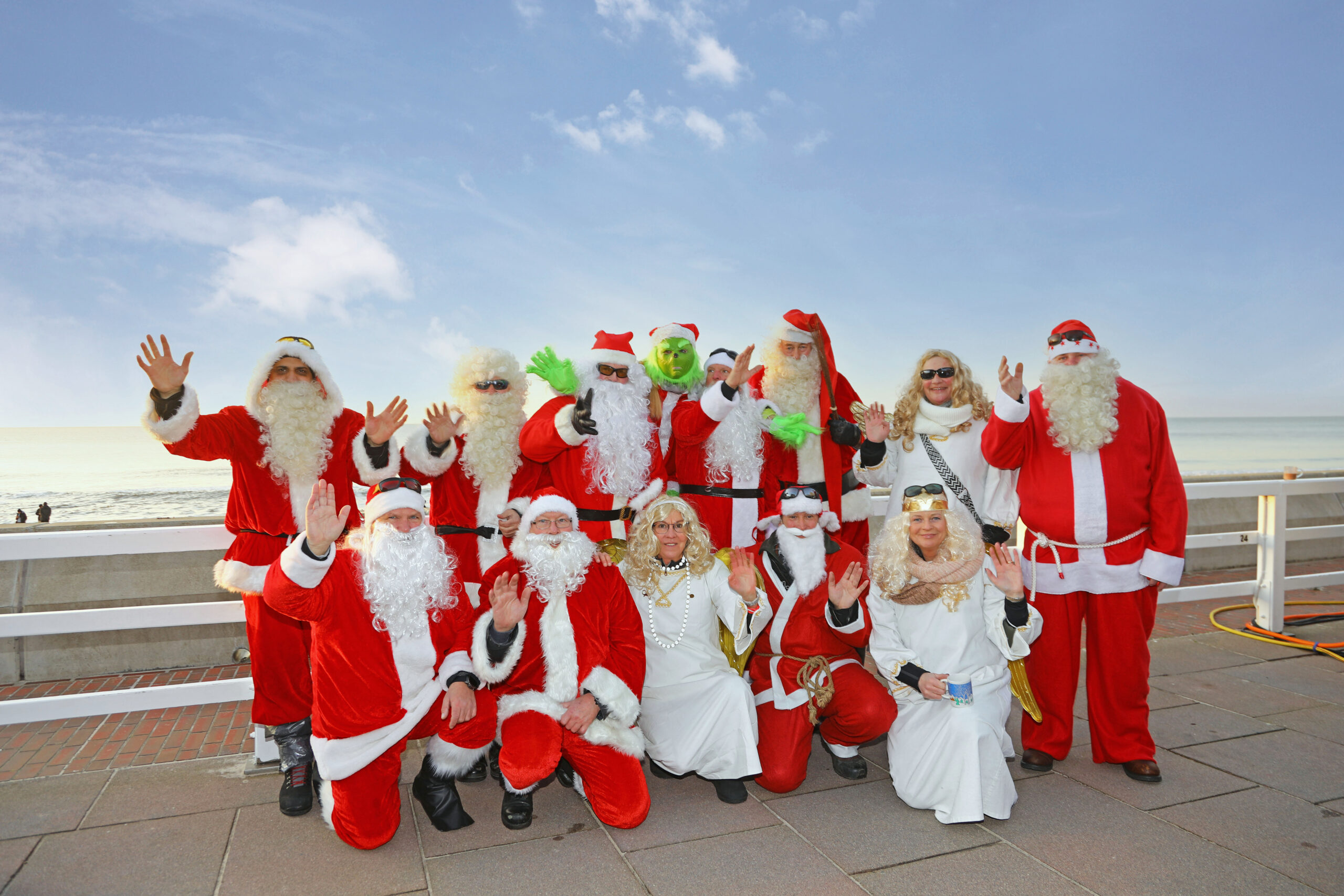Sylt. (red) Besser hätten es die acht Weihnachtsmänner, drei Engel und der Grinch kaum treffen können. Bei strahlendem Sonnenschein machten sie sich am ersten Weihnachtstag auf den Weg über die Insel und sorgten für besondere Momente bei kleinen und großen Zuschauern.