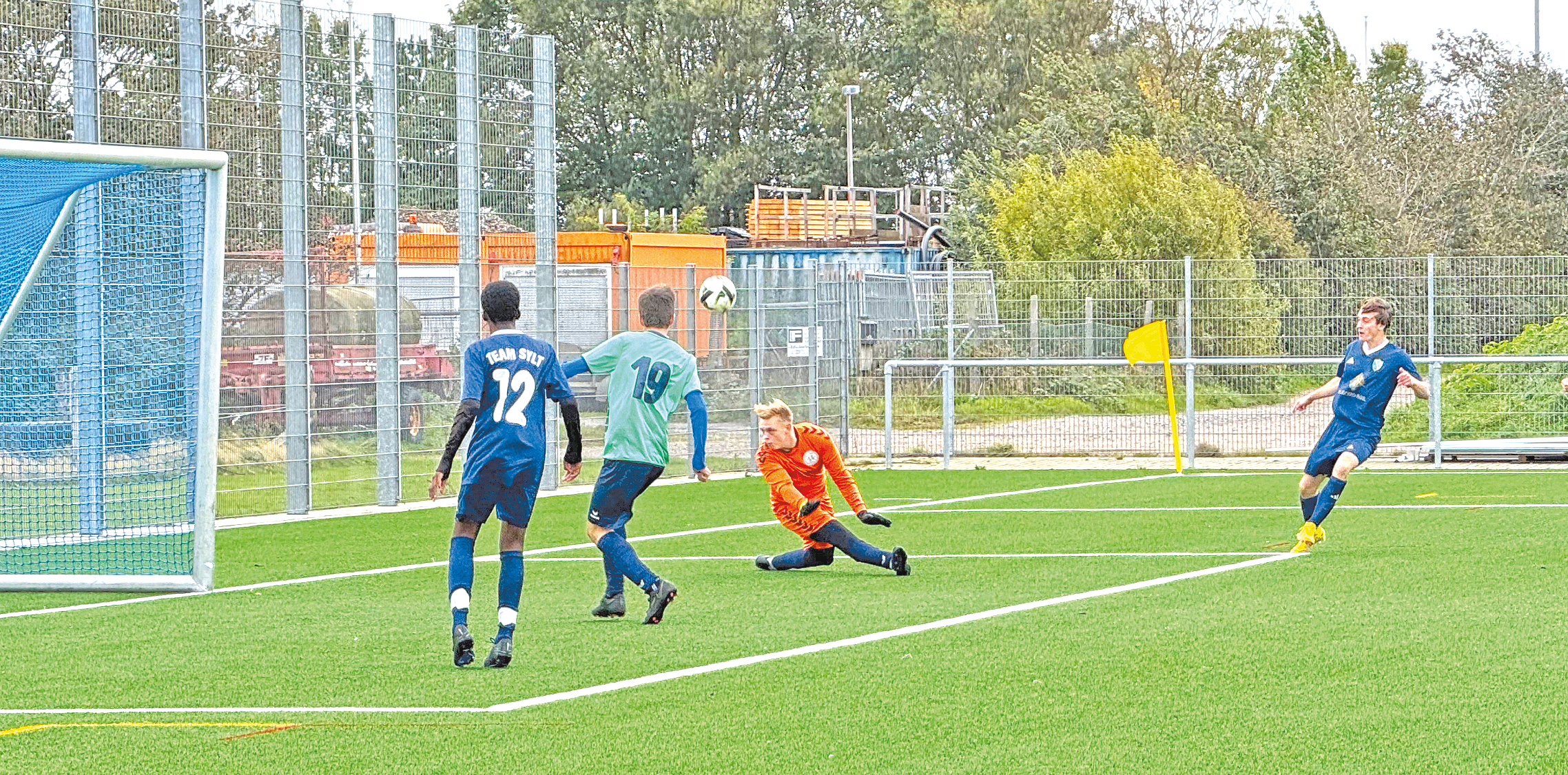 Von der ersten Minute an machte das Team Sylt klar, wer Herr im Hause ist. Gegen den Wind und einen tief stehenden Gegner agierten die Hausherren bissiger, übernahmen die Kontrolle und diktierten das Spiel. In den ersten 20 Minuten schnürten sie Wiesharde in der eigenen Hälfte ein, doch das altbekannte Problem machte sich bemerkbar: Bei aller spielerischen und technischen Überlegenheit fehlte der letzte, entscheidende Pass, um zu zwingenden Torchancen zu kommen.
