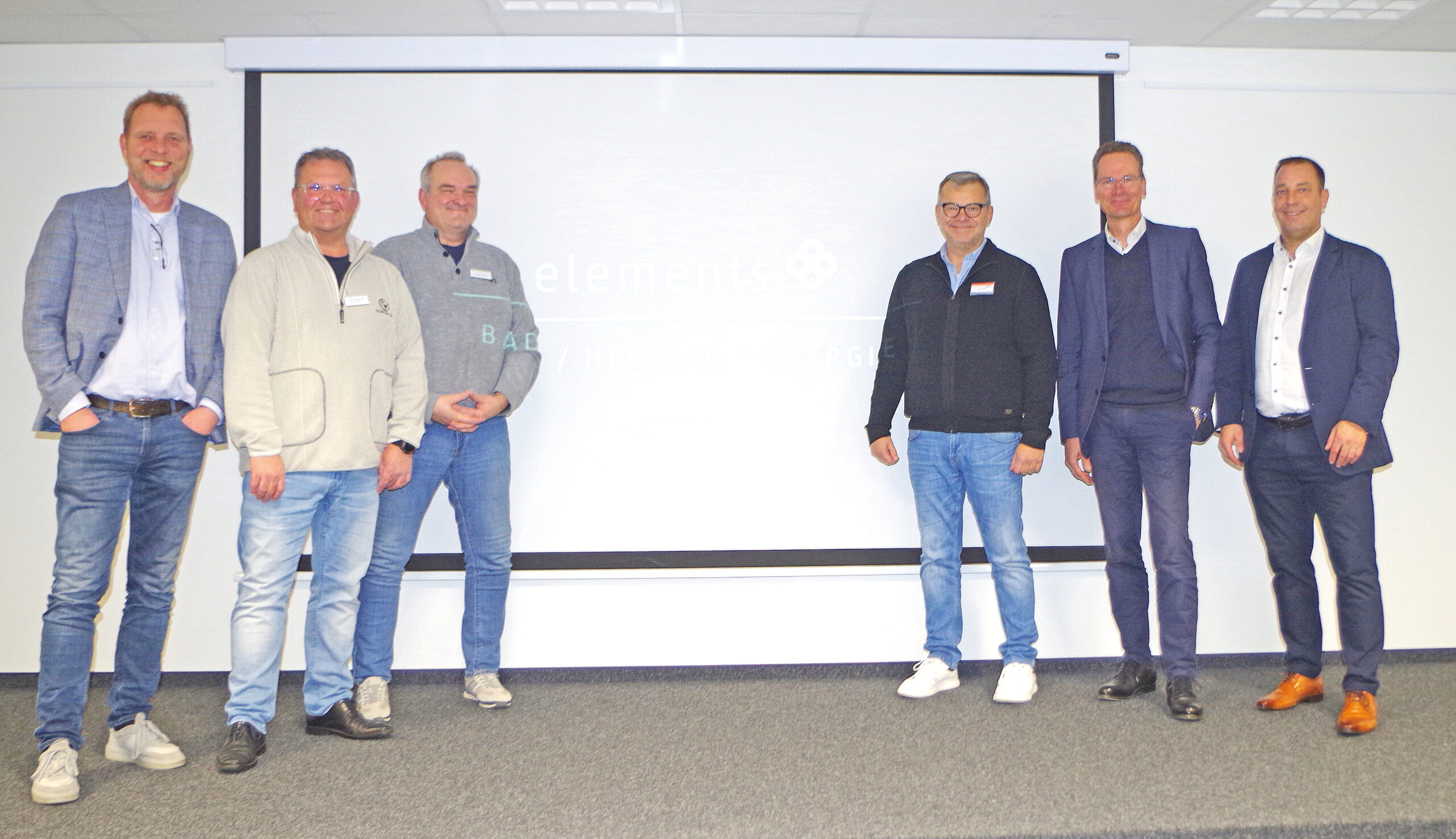 v.l.: Lars Kobarg (Elements), Obermeister Volker Bartling, stv., Obermeister Torsten Jensen, Lars Höft (Energieberatung SH), Georg Wember (EVS Sylt), Kai Habermann (Elements)